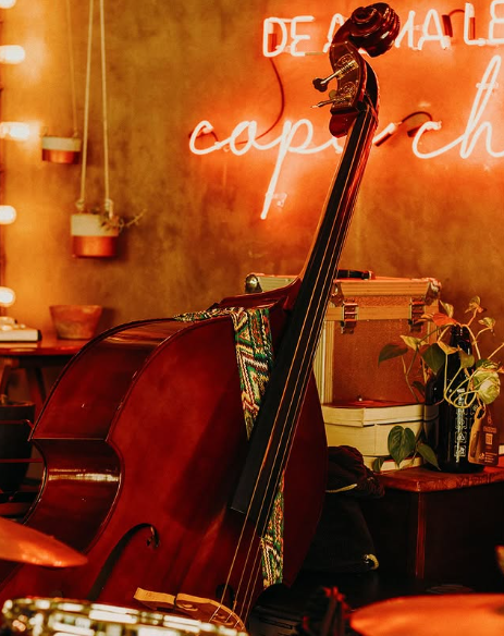 Vinil girando, alma leve e copo cheio. A música vem da escolha. O tempo desacelera e a mesa vira ponto